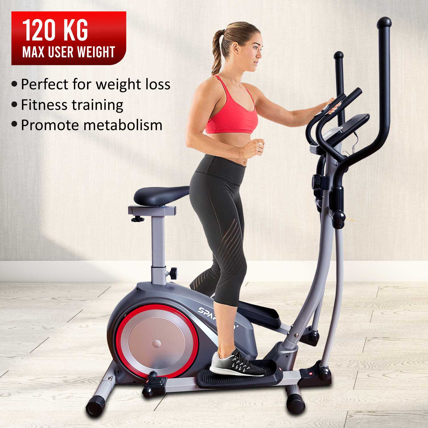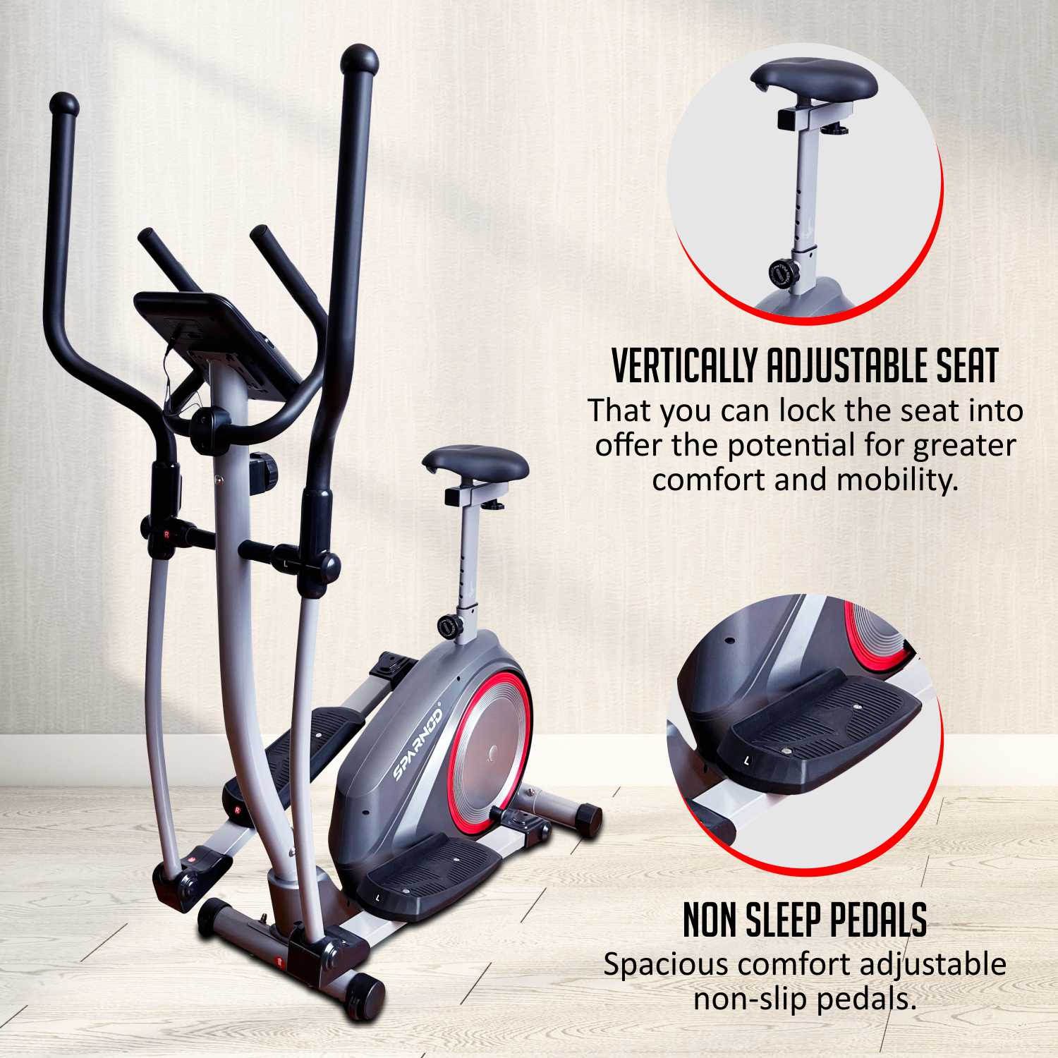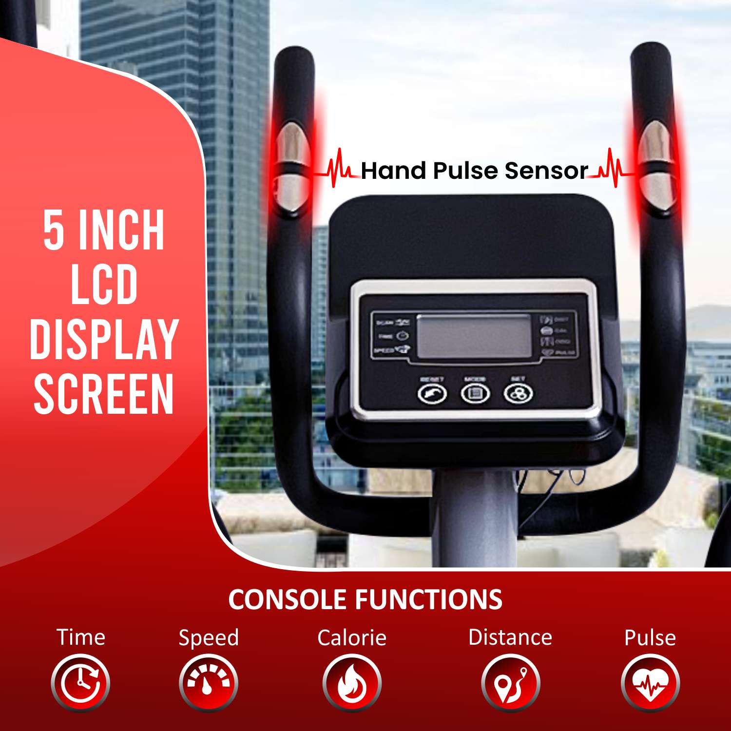 The Set-44 Elliptical Cross Trainer is the perfect addition to any home gym. This elliptical is made for fitness enthusiasts of all levels, with a magnetic resistance system and 16inch stride. Additionally, the Poly-V belt drivetrain ensures smooth operation, while the 7kgs two-way inner electromagnetic control flywheel keeps you motivated while you work out. The 5inch LCD screen provides information on your workout, such as time, speed, distance traveled, and more.