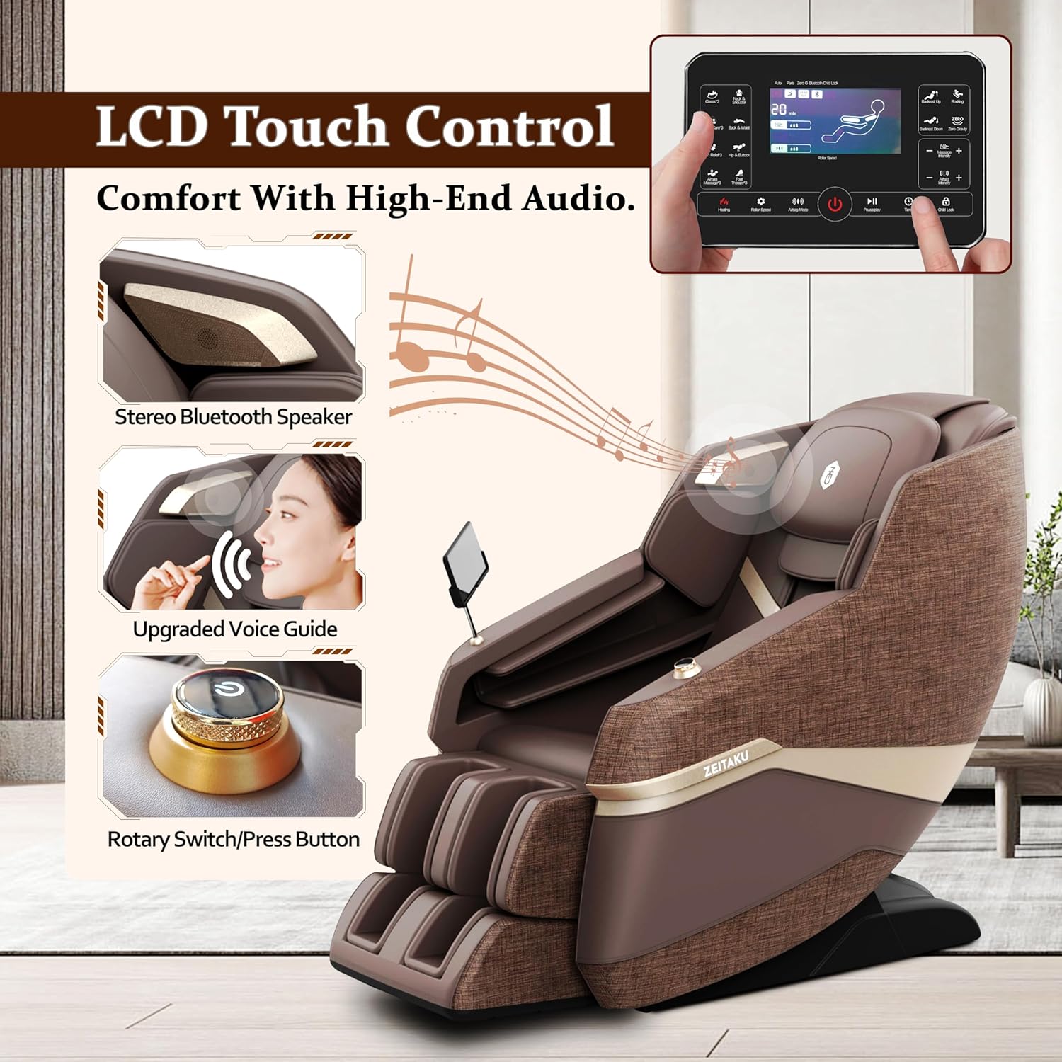 Premium Full Body Massage Chair CHIRU with Zero Gravity Recline, 22 Auto Wellness Programs, 8-Point Tui Na Massage, Magnetic Therapy, Foot Reflexology, Carbon Fiber Heating, Bluetooth Speakers & LCD Controller
