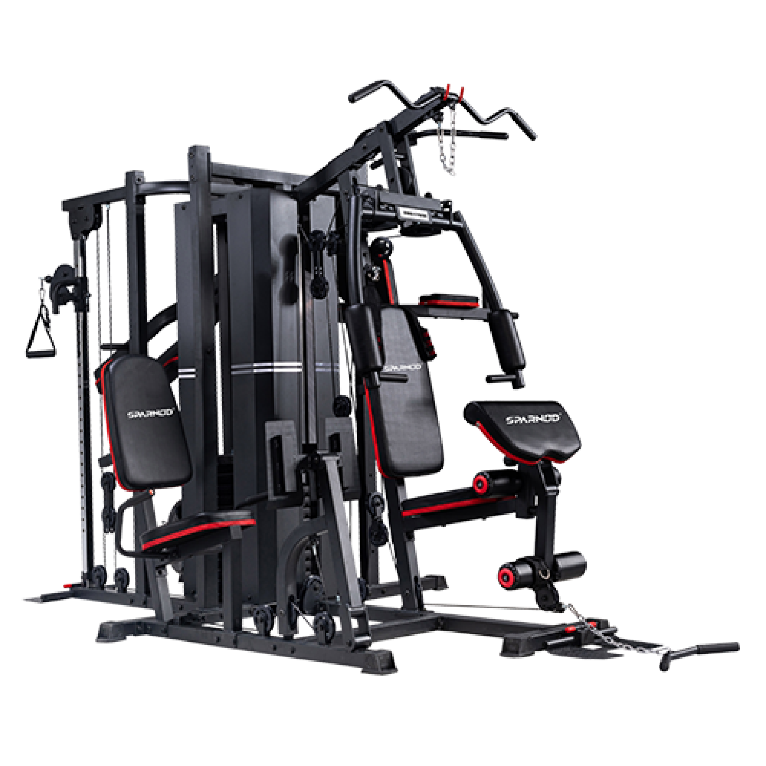 The SMG-17000 Five Station gym machine offers a versatile and durable workout with a 145kg weight stack and 500kg user capacity. Its robust steel frame and compact design make it ideal for both home and commercial gyms. Assembly required, with a 1-year warranty included.