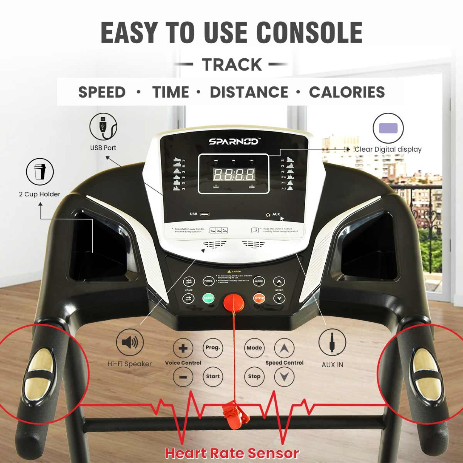 | Display Features | Speed, Distance, Time, Calories & Pulse |