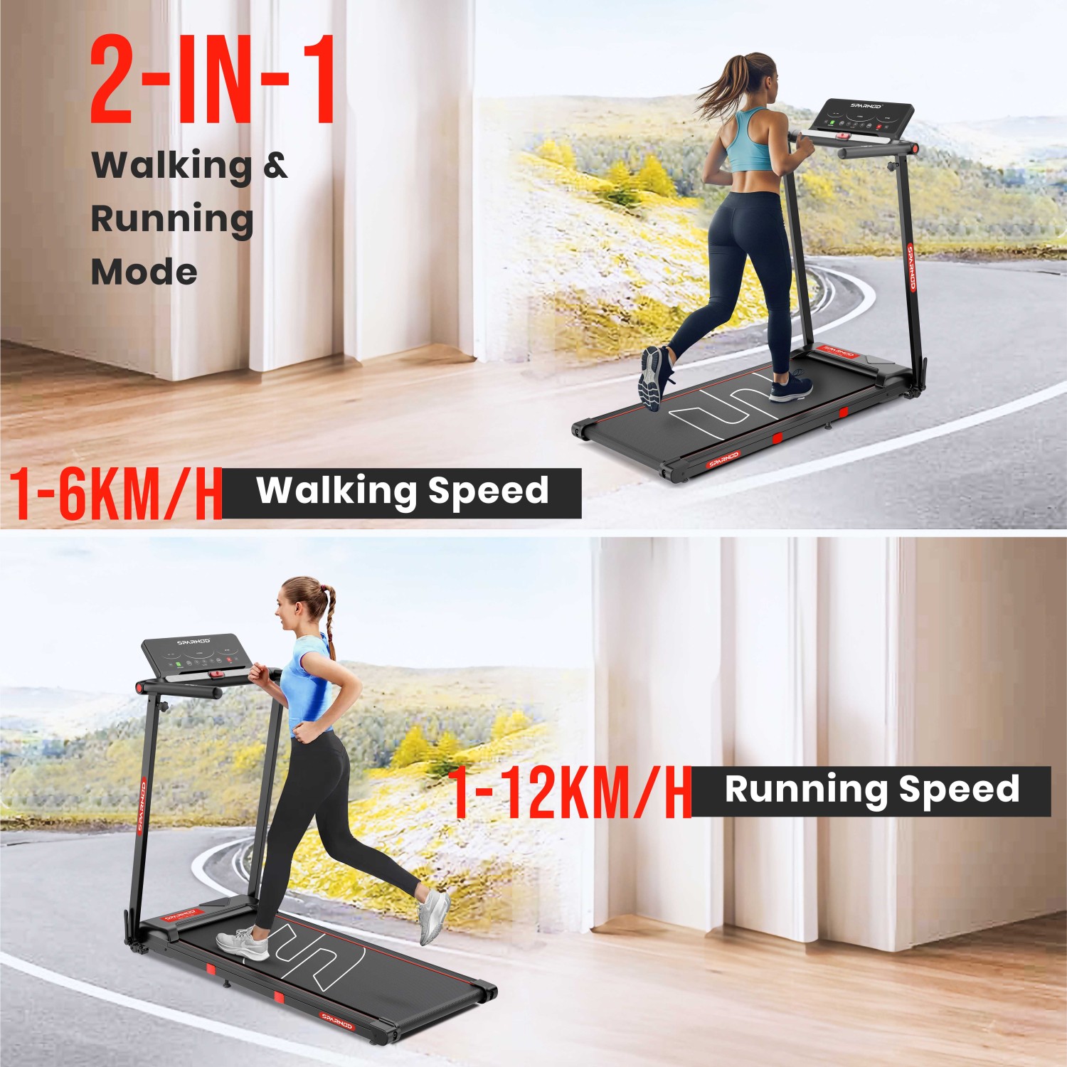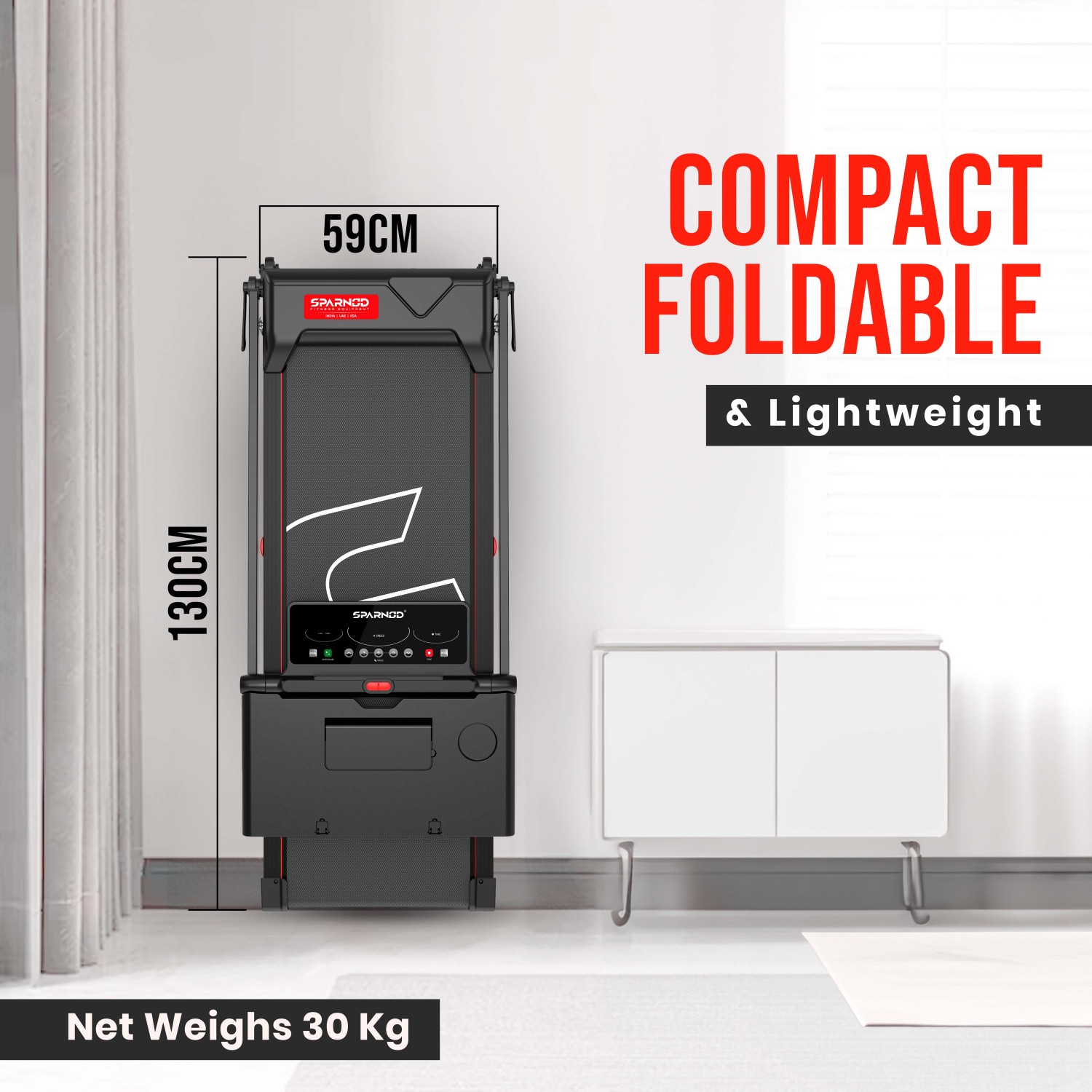 STH-3085 Home Use Treadmill with 4 HP DC Motor, 12 preset programs, LED display, Bluetooth speakers, and manual incline is ideal for compact indoor workouts. Features include foldable design, shock absorption, and mobile holder.