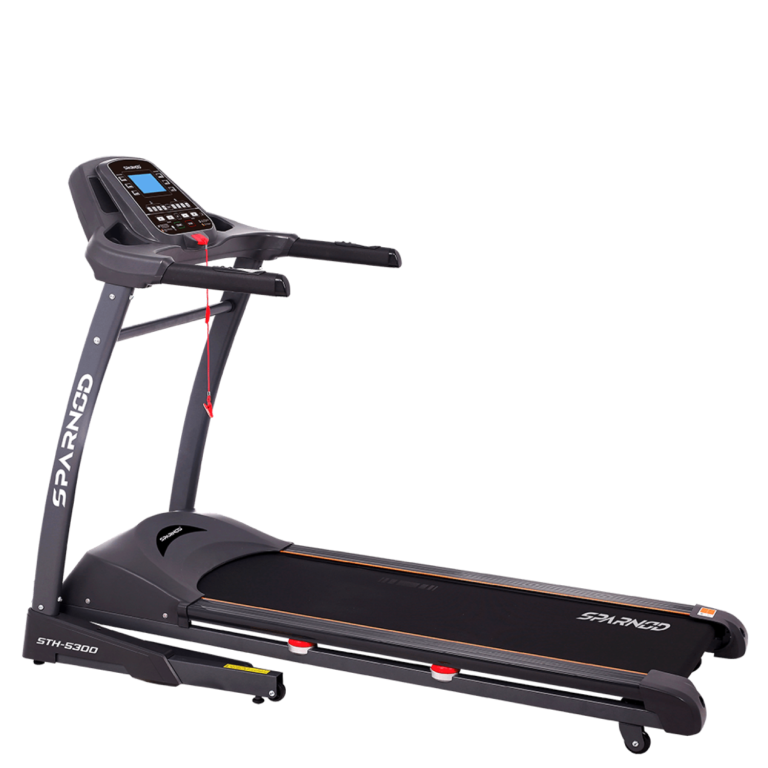This treadmill has a 2.75 HP continuous and 5.5 HP peak DC motor to create a smooth, consistent walking experience. The treadmill also has a heart rate sensor to monitor your heart rate so you can stay in control while you're working out. The running area is 1305x450mm/51x18in, and the incline range is 15% (auto). The treadmill also has a speed range of 0.5-16km/hr, and features a 5' LCD display that displays your current speed, time, calories burned, distance traveled, and pulse rate.