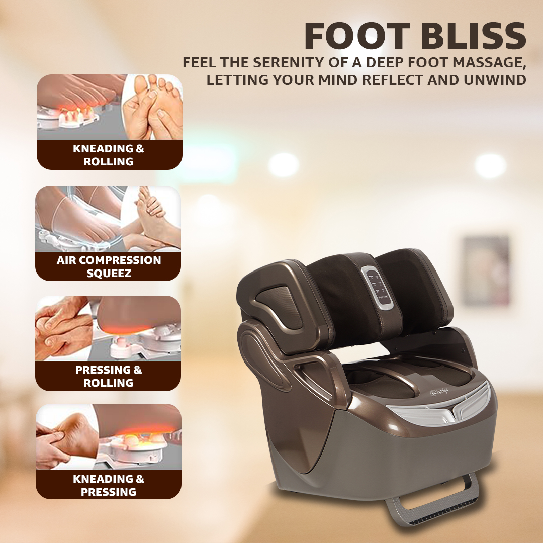 Provides complete massage for feet, calves, and legs for total relaxation.